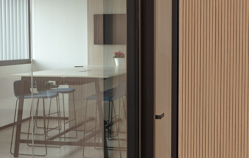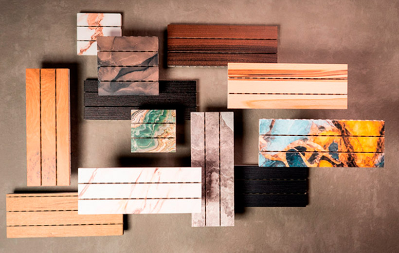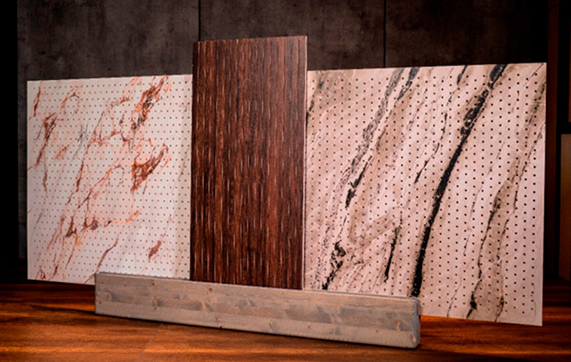 Трудногорючие декоративно-акустические панели с покрытием из шпона файнлайн.